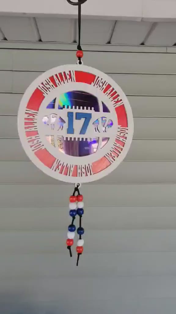 Brighten up your room with this Wooden Laser Cut DVD Suncatcher, light reflector. It is made up of laser cut Baltic birch, and then spray coated with a clear coat to help protect the wood. The DVD creates a brilliant shine inserted back-to-back between the two wooden layers. The DVD shows a brilliant display of beautiful rainbow colors. It hangs by a white suede cord with wooden beads. Hang it anywhere indoors where any kind of light is present. It doesn't have to be in the sun to reflect its beautiful colors.