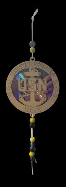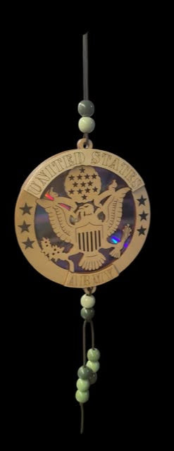 Brighten up your room with this Wooden Laser Cut DVD Suncatcher, light reflector. It is made up of laser cut Baltic birch, and then spray coated with a clear coat to help protect the wood. Choice of a DVD creating a brilliant shine inserted back-to-back between the two wooden layers or Camo Acrylic. The DVD shows a brilliant display of beautiful rainbow colors. It hangs by a black suede cord string with wooden beads. Hang it anywhere indoors where any kind of light is present. It doesn't have to be in the sun to reflect its beautiful colors.